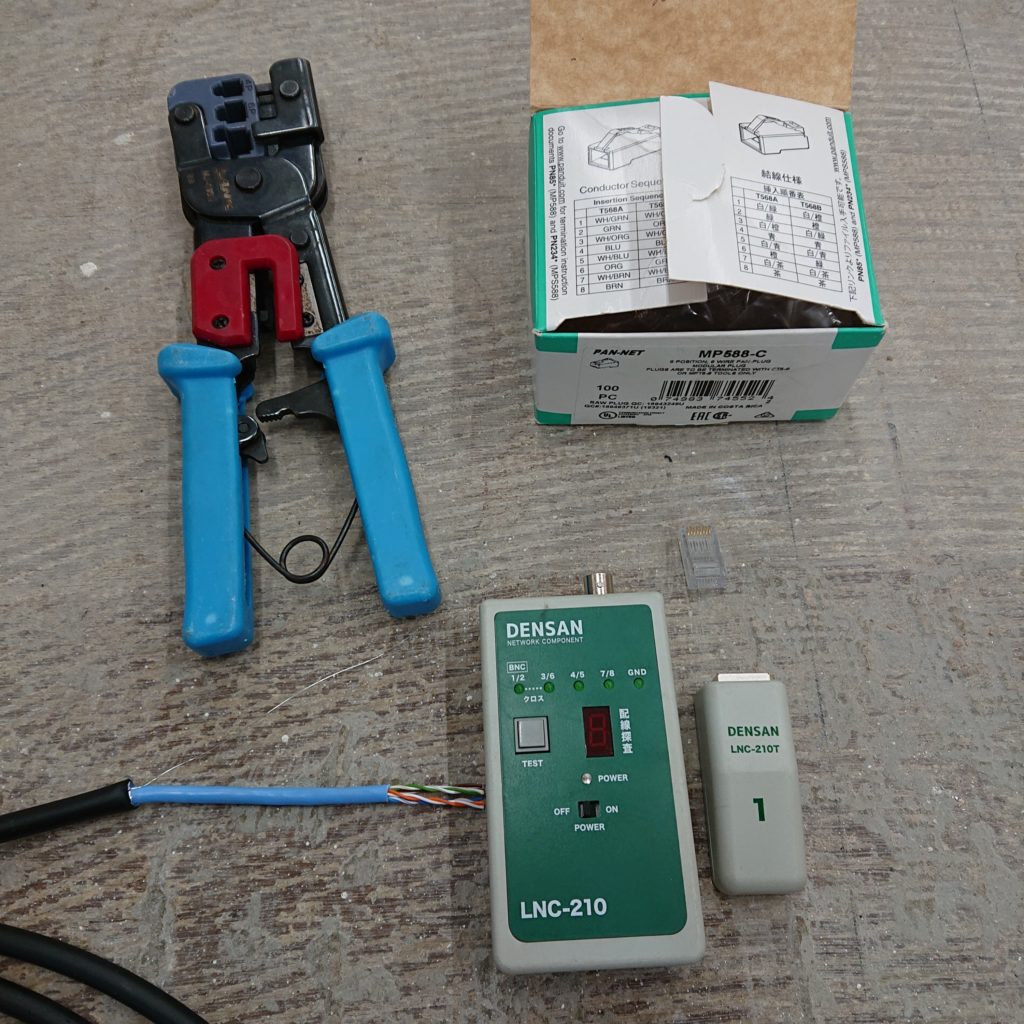 今回は、LANケーブルの差し込みコネクタ(RJ45)の作成について紹介したいと思います。